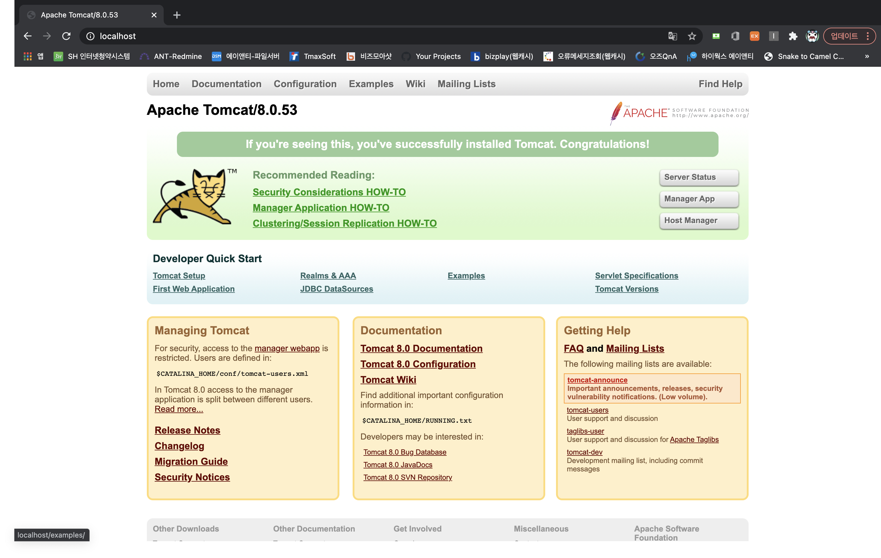 이 부분의 tomcat 부분은 내가 설정한 톰캣 컨테이너의 이름이 들어가야함