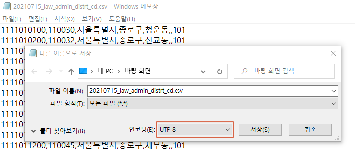 3.CSV 파일을 UTF-8로 인코딩