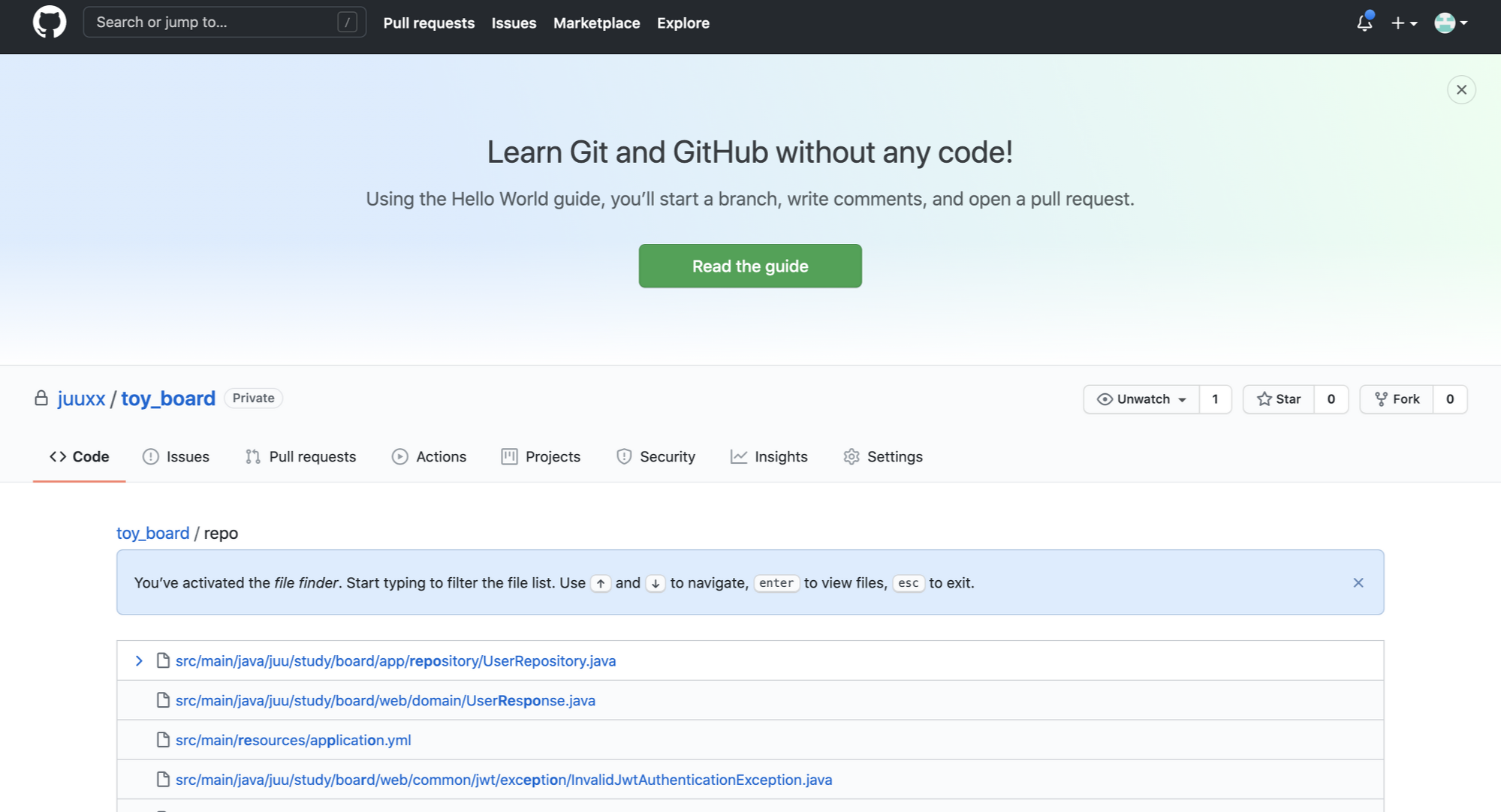 octotree를 크롬 웹스토어에서 다운 받으면 파일 네비게이터를 쓸 수 있다.(private repo는 안되는듯)