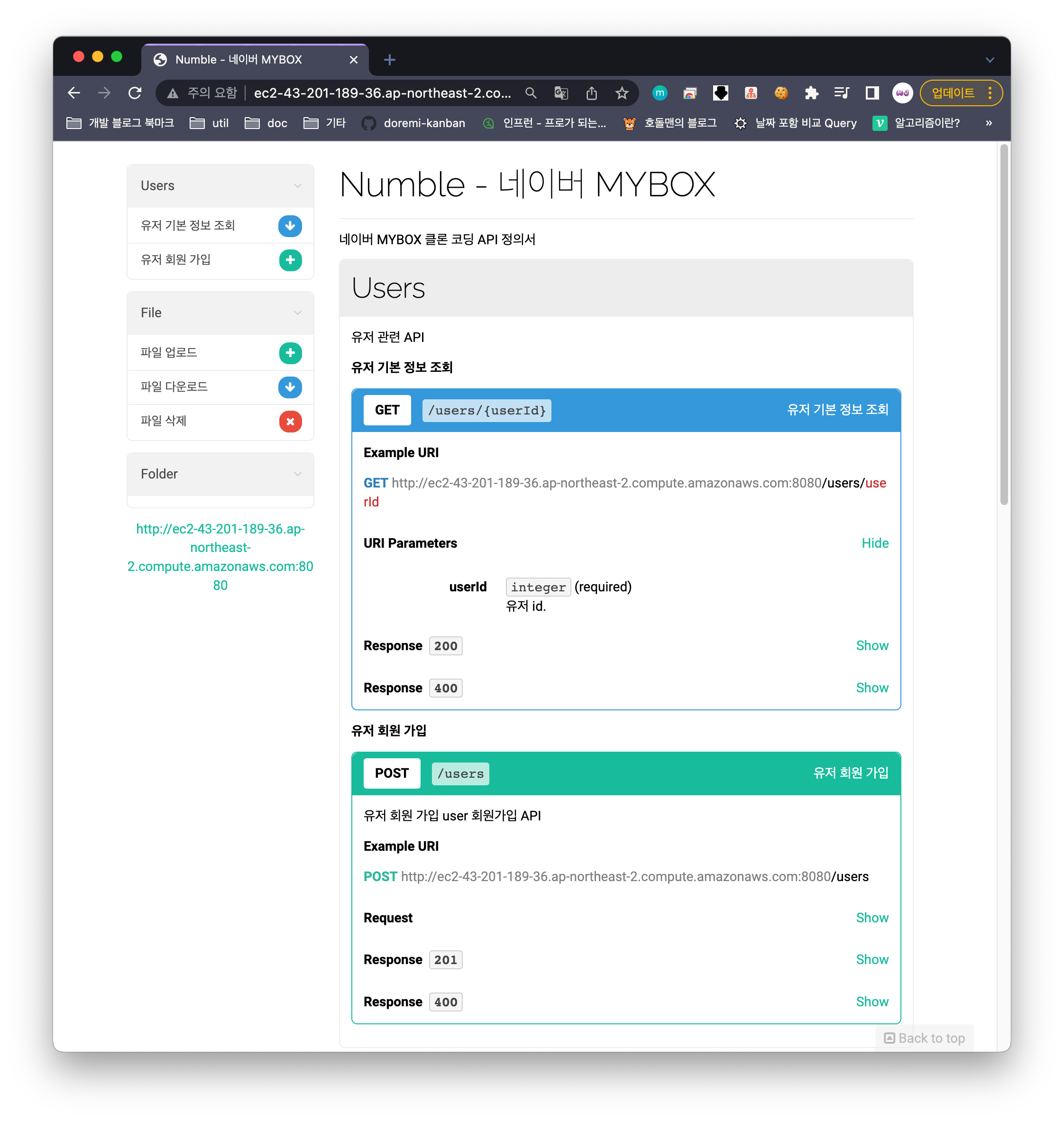 이거 이외에도 회사에서 api 문서 작성으로 무슨 툴을 써볼까 여러가지 고민이 많었어서 도입 전에 써볼까 하고 이 프로젝트에 gitbook이랑 api blueprint 를 써봤는데, 일단 gitbook은 한글이 잘 안써져서 탈락(UI는 진짜 이뻤는데..)api blueprint는 적용해봤는데, swagger의 yaml 방식 보단 작성하기 편하긴 한데, md 방식임에도 뭔가 작성하기 까다롭다 생각이 들었다. 역시 swagger 만세.